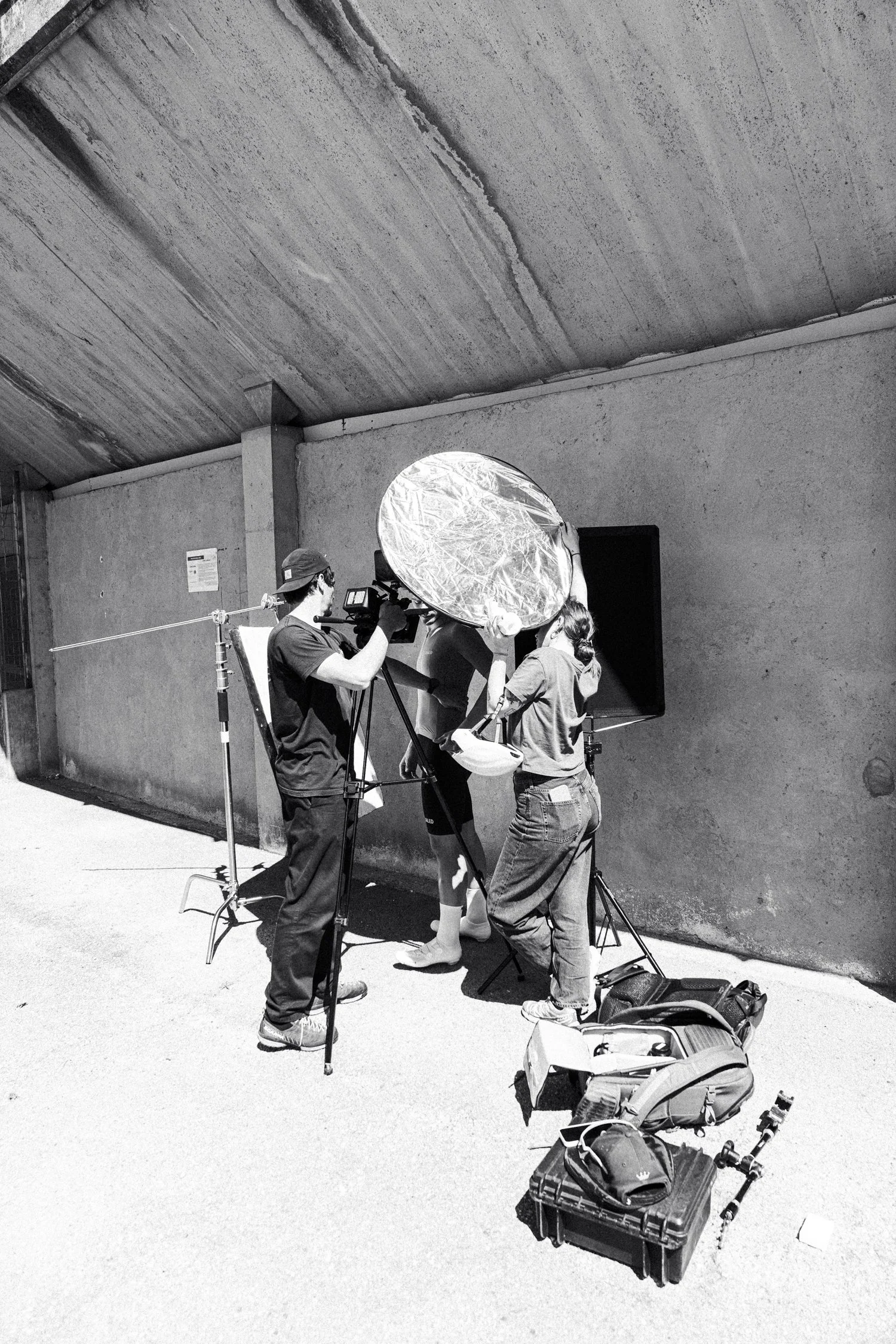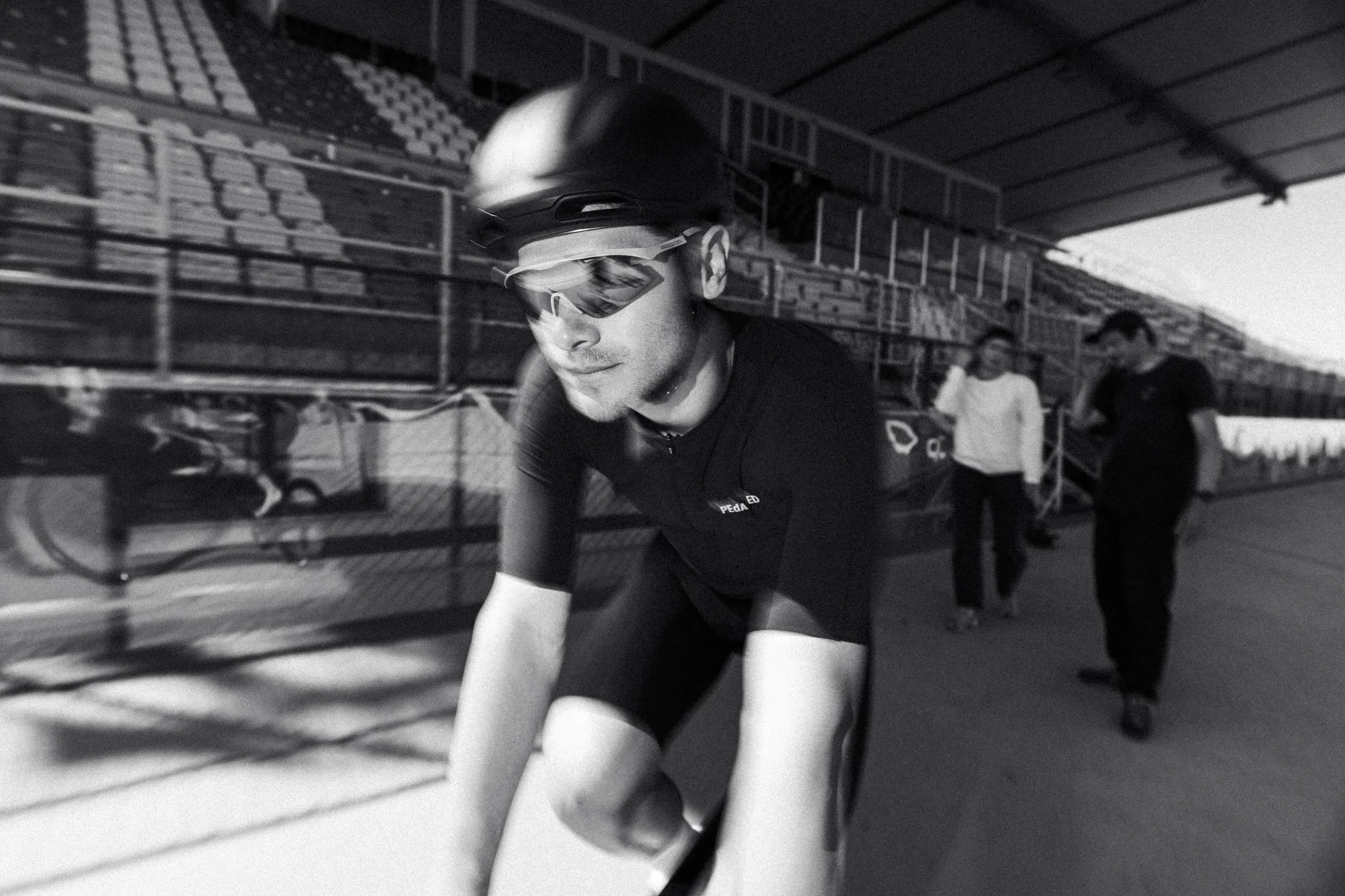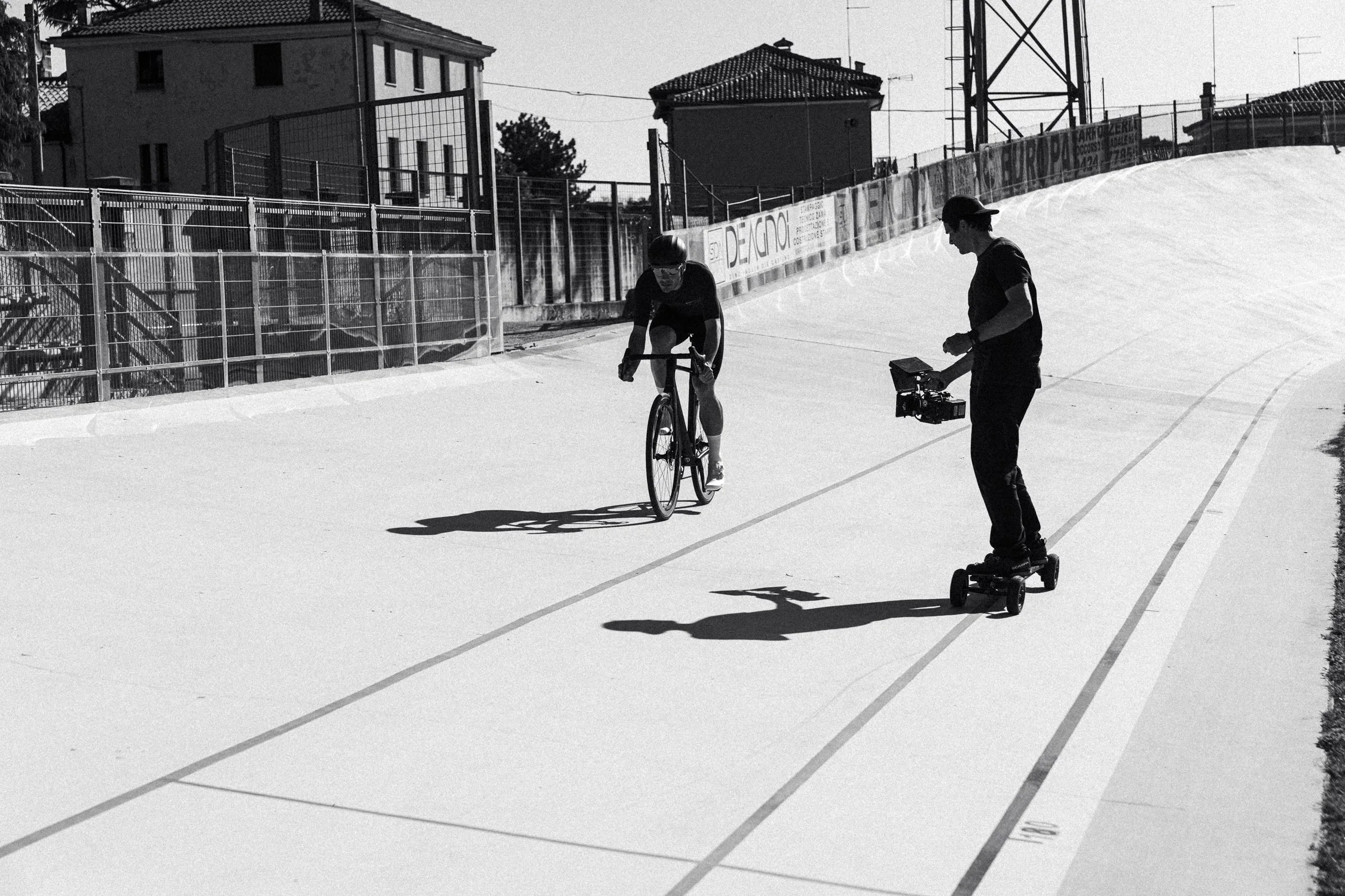 Dynamic shots of a cyclist cutting through the wind. To emphasize the intensity of the action, I filmed handheld with an unstabilized camera, 360° shutter angle while chasing the rider on an electric skateboard. The sequence is complemented by tripod shots, counter-movements, and rig setups with the camera mounted directly on the bike. Finally, the black-and-white look was chosen to avoid distractions and to echo the two colors of the collection.