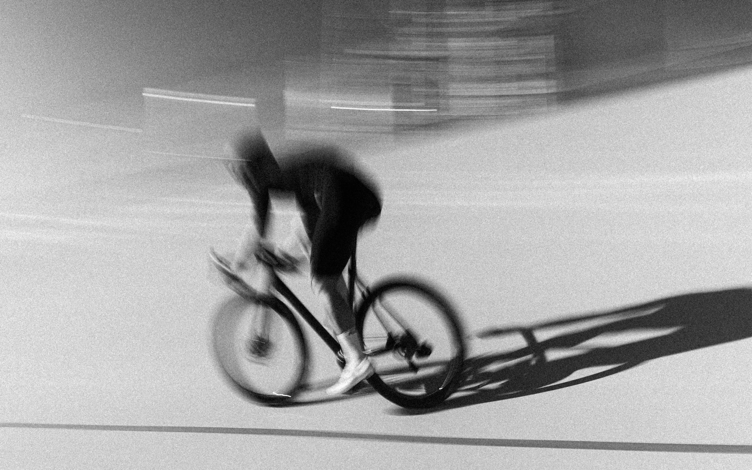Dynamic shots of a cyclist cutting through the wind. To emphasize the intensity of the action, I filmed handheld with an unstabilized camera, 360° shutter angle while chasing the rider on an electric skateboard. The sequence is complemented by tripod shots, counter-movements, and rig setups with the camera mounted directly on the bike. Finally, the black-and-white look was chosen to avoid distractions and to echo the two colors of the collection.